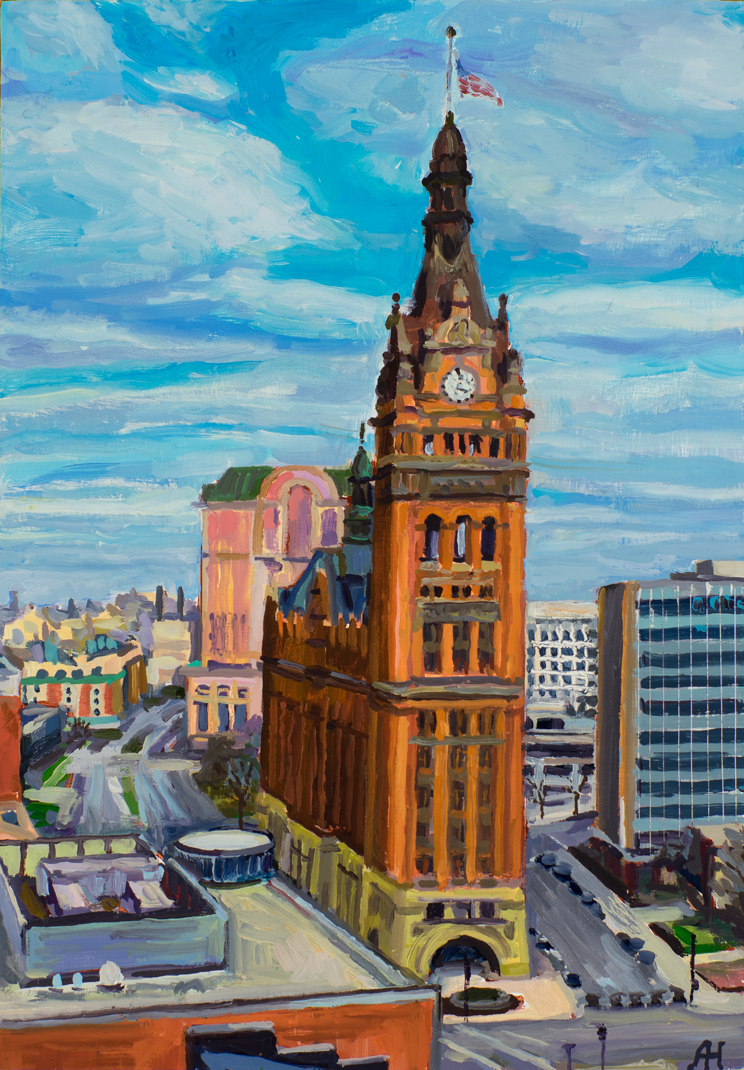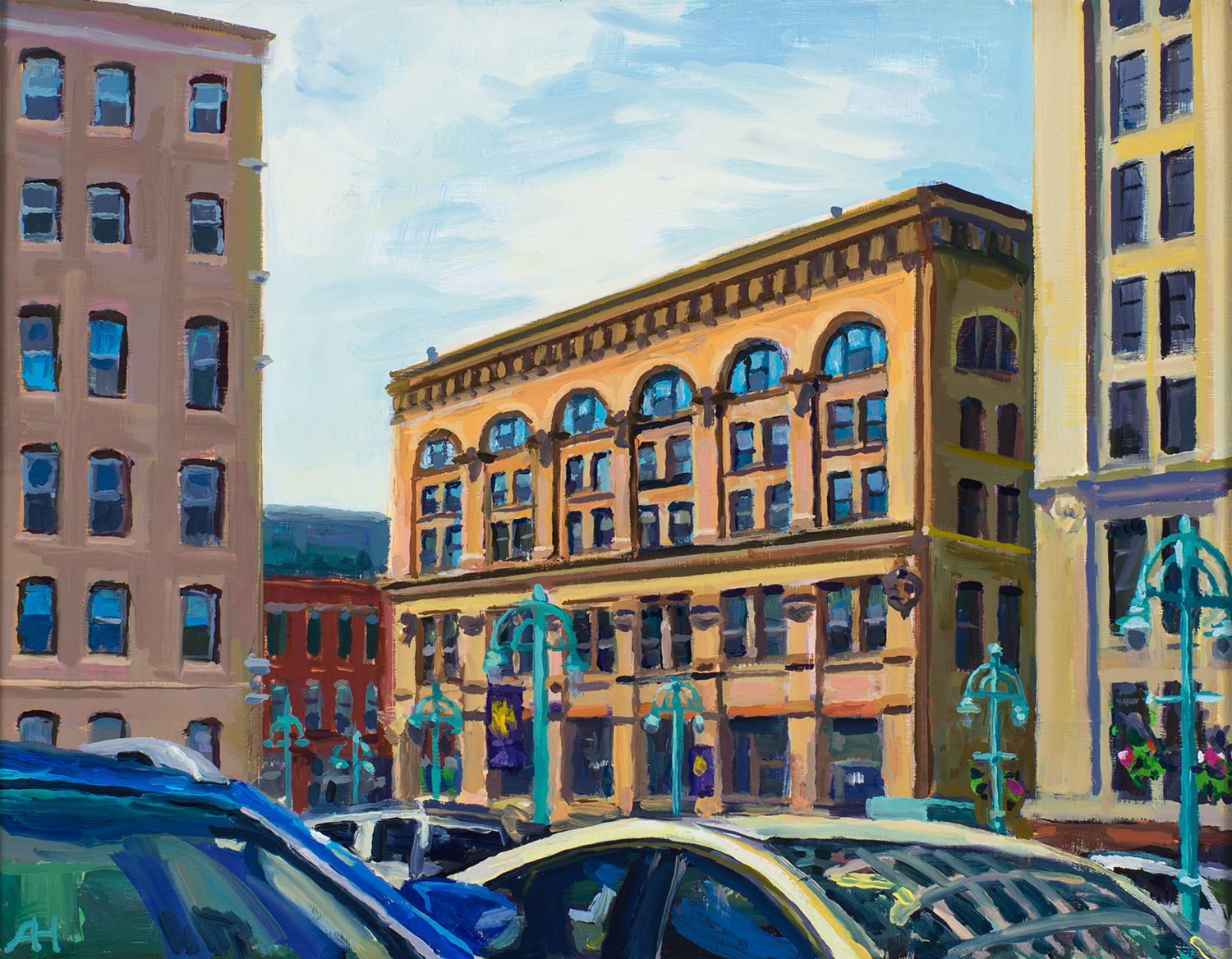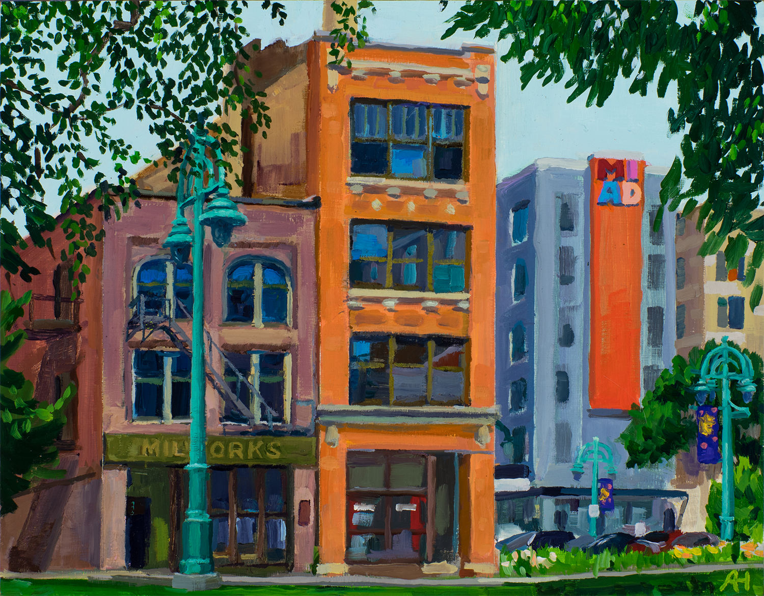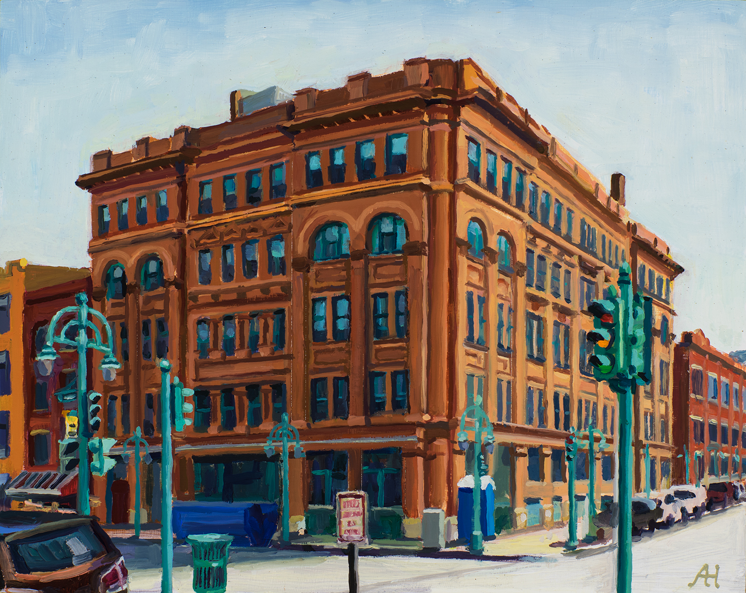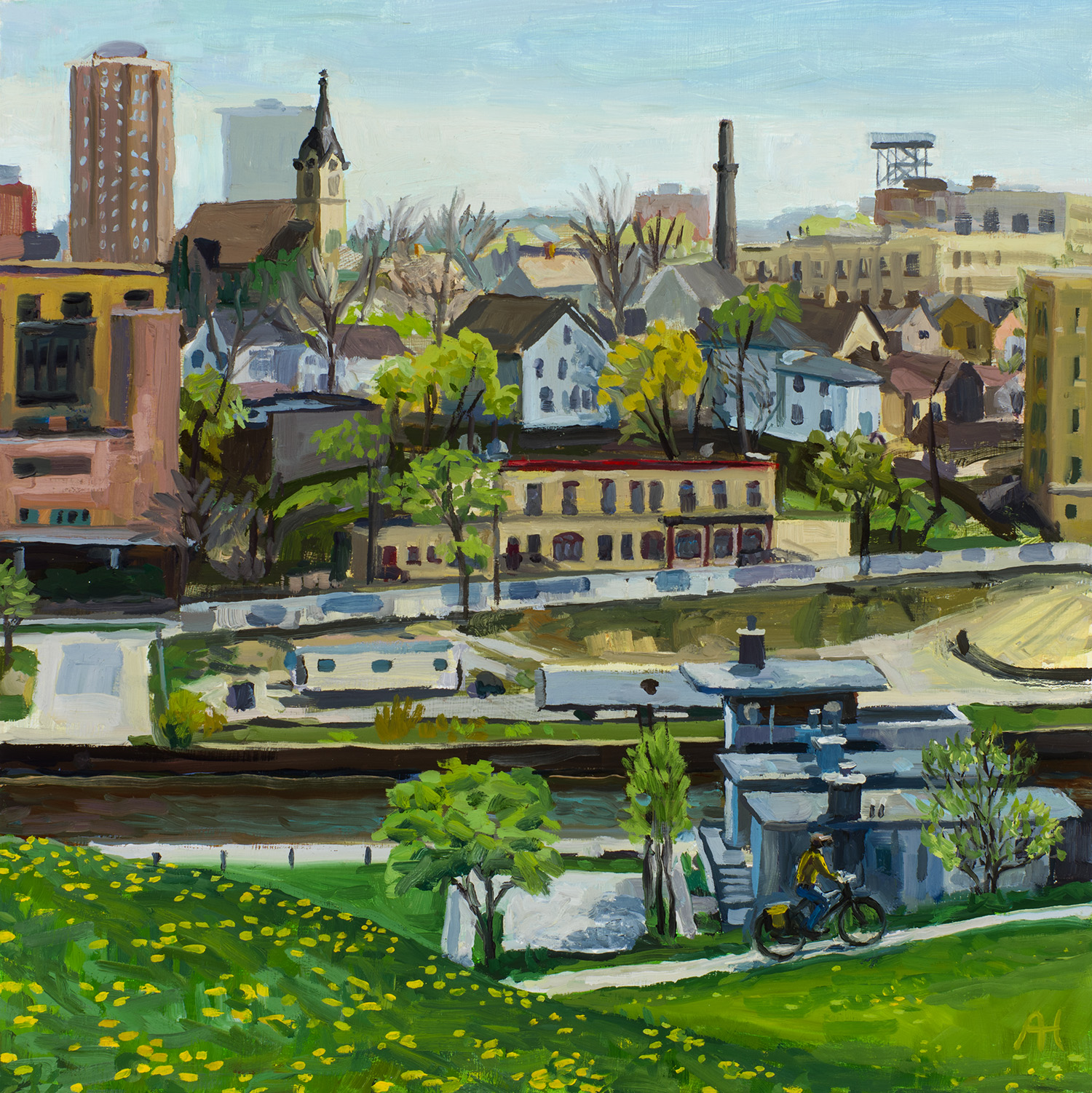 Milwaukee River at Humboldt Bridge, oil on wood, 12″ x 14″, 2017